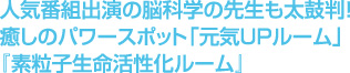 某人気番組に出演している脳科学の澤口先生が推奨するスパリゾート・フジの元気UPルームは、サウナ、岩盤浴とは違い服を着たままリフレッシュ効果を体験できます。